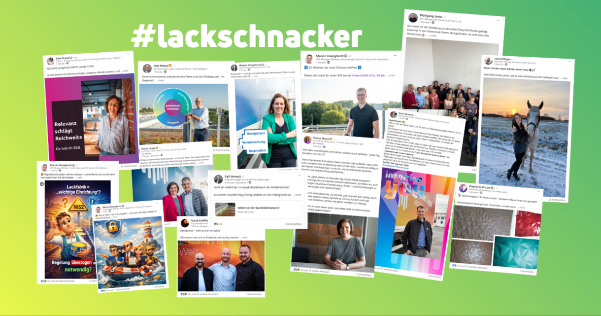 Die meisten Beiträge tragen den Hashtag #lackschnacker – ein verbindendes Element, das die einzelnen Geschichten zu einem gemeinsamen Narrativ zusammenführt und gleichzeitig die Vielfalt bei Hesse Lignal sichtbar macht.